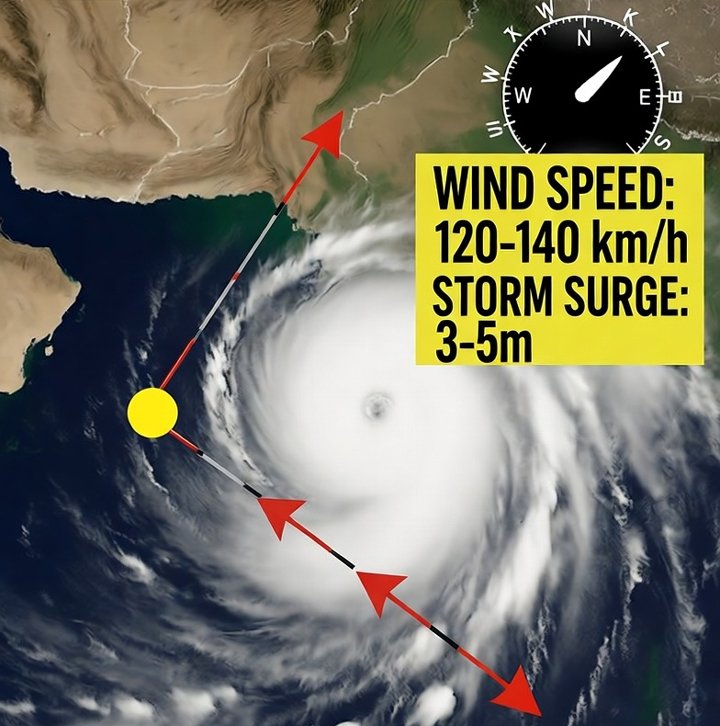 Wind: Speeds may reach 90–110 km/h along the coast during landfall.
